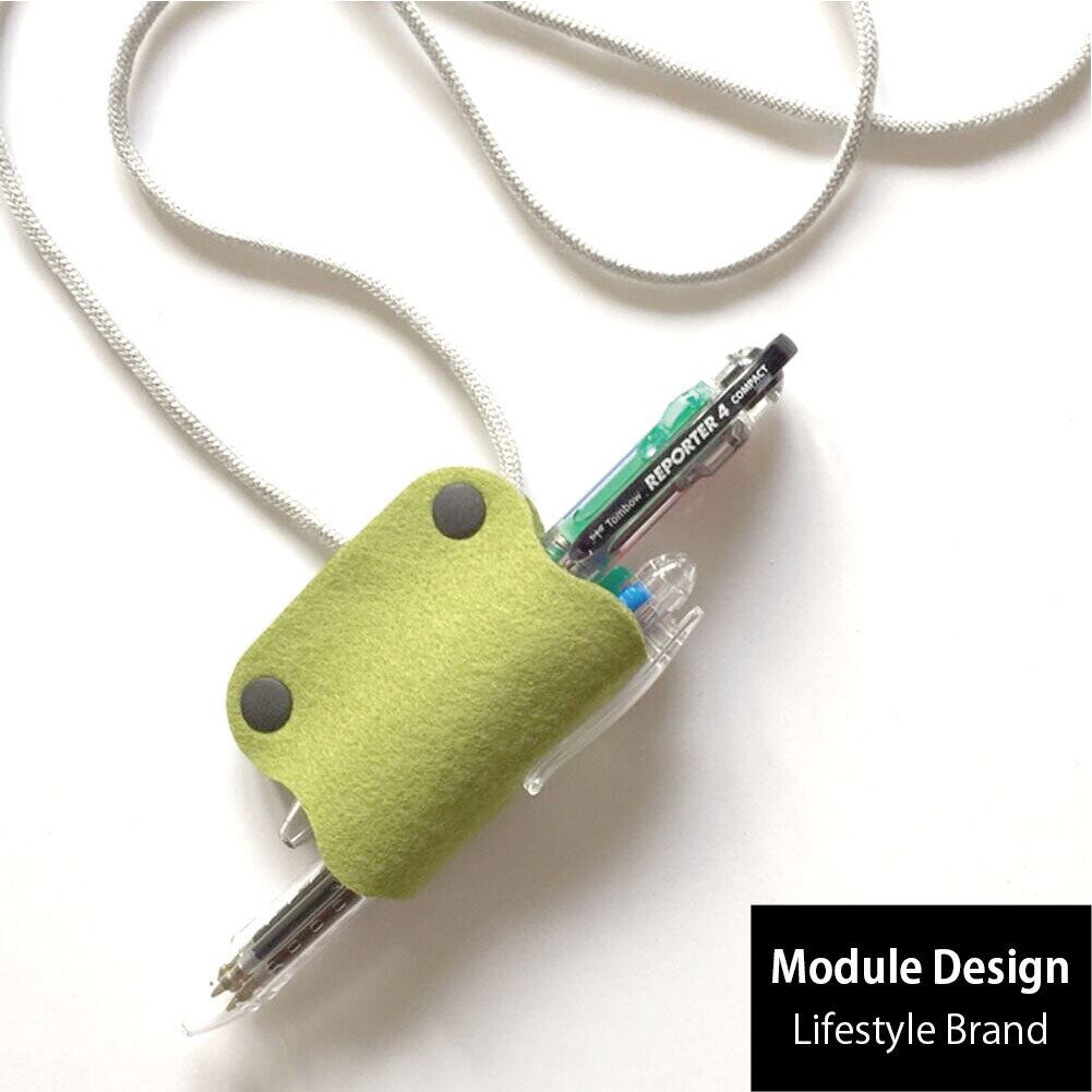 ペン2本対応、フェルト素材の〈ペンホルダーW〉をデザインしました。2個のスナップボタンがポイントです。付属の紐により首掛けとして使ったり、紐を外して使用するのも使い方のアイデアを広げます。スマホと一緒に持ち歩けばスマホレスト(3枚目の写真)として使うのも機能的です。フェルト素材はソフトで優しく心地よく使うことができます。長く快適にお使いいただけるようウォッシャブルフェルトを採用しています。新しいパッケージ(4枚目の写真)はプレゼントにもおすすめです。
